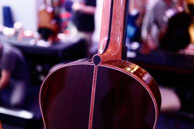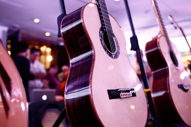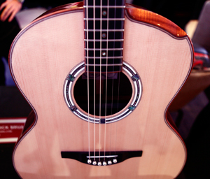 Pierrick Brua fut le premier et le seul luthier à exposer au Salon de guitare de Montréal en 2007. Depuis, il est présent chaque année avec pour cette 4ème édition trois modèles qui représentent bien le savoir-faire du luthier : une arch-top, une classique et une folk.