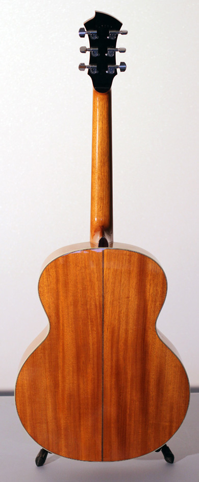 Le dos, les éclisses et le manche sont ici en acajou et apportent à cet instrument un brillant