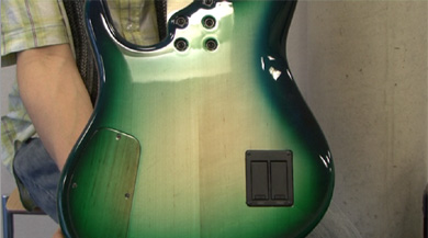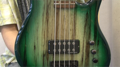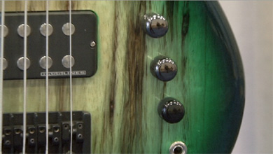 Décidemment, nos luthiers ne manque pas d'imagination et c'est Fred Schneider qui va faire vibrer cette cinq cordes qui ne manque pas de charme avec une finition impeccable.