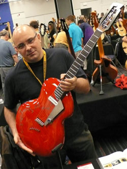 L'idée de base était de concevoir l'instrument qu'aurait pu dessiner un dessinateur de BD des années quarante si on lui avait demandé d'imaginer la guitare de Charlie Christian au troisième millénaire... Je pense qu'il aurait peut être sorti un truc du genre 'air mail special', un peu kitch avec de la personnalité, à l'image des voitures des années cinquante, le coté OVNI en plus."