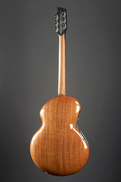 -guitare de Jazz en deux parties creusées dans de l'érable massif pour la table et de l'acajou massi pour le fond.