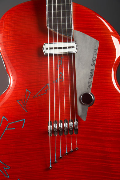 "Le concept de l'instrument etait de rendre hommage au guitariste Charlie Christian à travers trois idées, le dessin du micro, la destination jazz de l'instrument et le nom, "air mail special" ,un des rares morceaux composé avec Benny goodman par Charlie Christian.