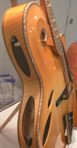 Certains trouveront cette guitare d'une rare beauté, d'autres la trouveront un peu trop riche. Toujours est-il que la finition de cet instrument est irréprochable. La table et le dos sculptés sont tout simplement des pures merveilles.