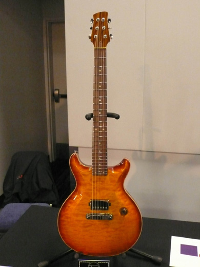 SILVERTOP : Pour le salon de Montréal, Hervé a réalisé un instrument particulièrement original pusiqu'il est réalisé dans un seul et même bloc d'acajou. Voici les commentaires du luthier au sujet de la Silvertop :