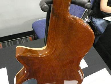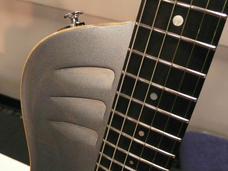 Le manche est renforcé en carbone, et la jonction au corps se fait au niveau de la douzième frette, ce qui donne au manche une rigidité importante. L’accès aux aigus est néanmoins parfait, l’arrière du corps étant profondément sculpté à cet effet.