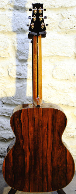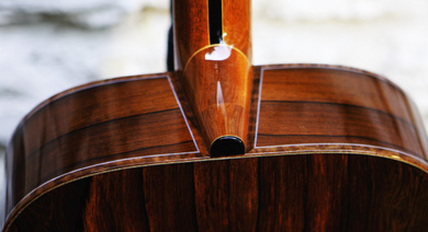 Le dos et les éclisses sont réalisés dans un sublime palissandre de Madagascar joliment figuré et confère à cette guitare une élégance à couper le souffle.