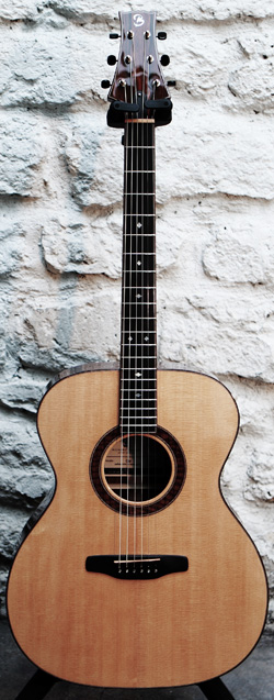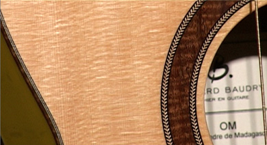 de cette OM est un exemple de perfection. Il n'est pas donné à tous les luthiers de faire d'une guitare qui sonne un bel objet d'art. Richard excelle dans les deux domaines et une inspection minutieuse ne révèle aucun défaut.