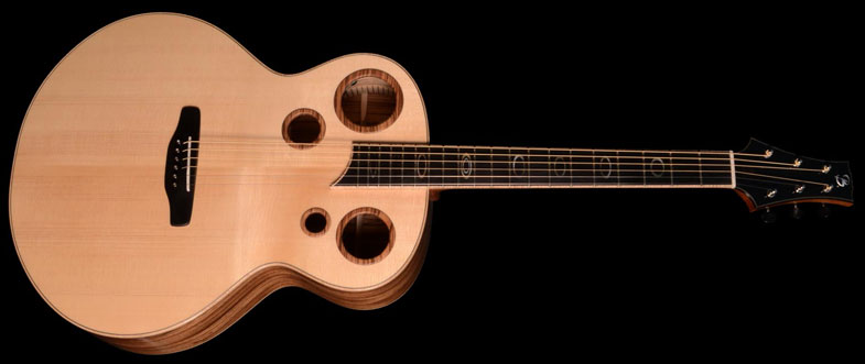 | Guitare hybride au Salon de la Belle Guitare | |  |  |