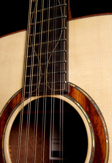 avec une table en épicéa du Jura, un manche en acajou, dos et éclisses en noyer noir ondé, touche, chevalet et placage de tête en ébène. Les 12 cordes sont rares et les bonnes, encore plus. Richard compte parmi les luthiers en France à proposer des modèles de références. Nous avons la chance de pouvoir écouter et voir ce modèle en vidéo avec Michel Gentils et Michel Haumont, deux styles, deux touchers, deux approches de la 12 cordes qui vous montrent l'énorme panel de jeux que propose ce type d'instrument. Le prix est de 4 400€.