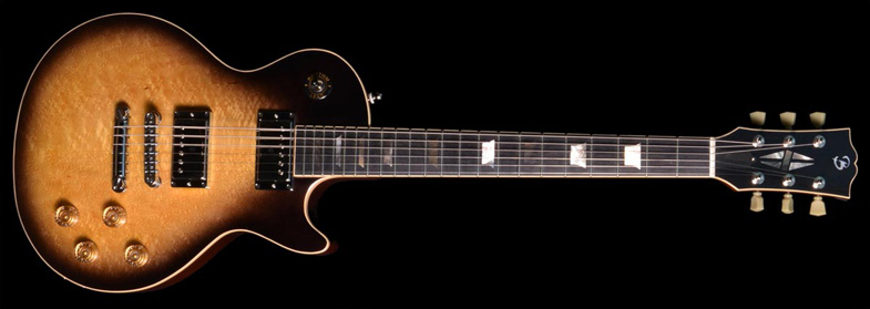 par Richard avec un corps en acajou du Honduras et une magnifique table en érable moucheté mise en valeur par un sunburst très réussi.