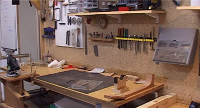 On parle beaucoup des guitares de luthiers à travers des présentations, bancs d'essai et autres salons mais une des choses les plus enrichissantes est de rendre visite au luthier dans son antre, là où tout se passe...