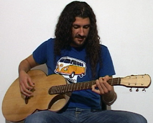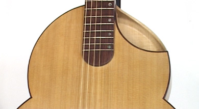 Je l'ai sélectionné en 2010 pour participer à la mission française au salon de guitare de Montréal (voir lien) et cette année 2011 a été pour lui une année très prolifique avec plusieurs nouveaux modèles dont cette fameuse cordes acier à double-bouche, concept inspiré des tous derniers modèles de Gérad Audirac.
