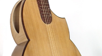 Tous les corps (dos et éclisses) de ses instruments sont d'un seul bloc évidé.