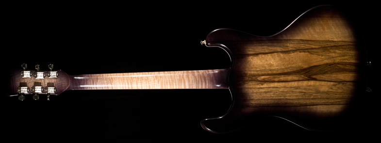 Regardez cette guitare sous tous les angles, c'est un travail remarquable qui a été réalisé. Le choix des essences est redoutable d'efficacité avec mon coup de coeur pour le plaquage de tête en Loupe de thuya du Maroc ! Les micros sont d'origines et ça, ça le fait !
