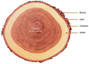 Les couches successives de vaisseaux qui se forment sous le cambium constituent l'aubier qui correspond au bois physiologiquement actif. Ces vaisseaux cessent peu à peu d'alimenter l'arbre après quelques années. Ils se bouchent et s'imprègnent de différentes substances : tanins, résines...