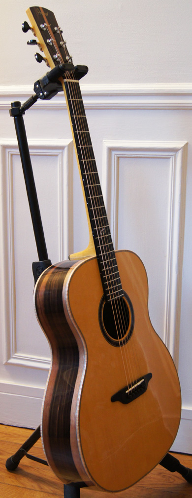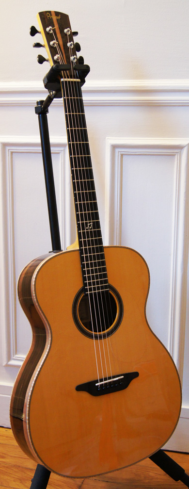 Cette superbe OM est un bel exemple d'une collaboration entre un client et son luthier. Il suffit de lire, ci-dessous, le mot du client pour s'en convaincre.