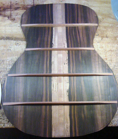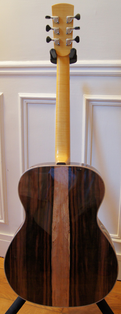 Pierre a voulu cette pièce d'ébène de Macassar pour le dos et les éclisses avec l'aubier apparent (voir photos).