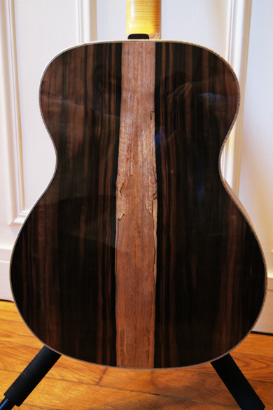 Entre ces bijoux à faire revivre, Romuald fabrique ! Je vous présente aujourd'hui un modèle OM qu'il a réalisé pour le guitariste Pierre Michaud que je remercie chaleureusement pour sa confiance ainsi que pour les photos.