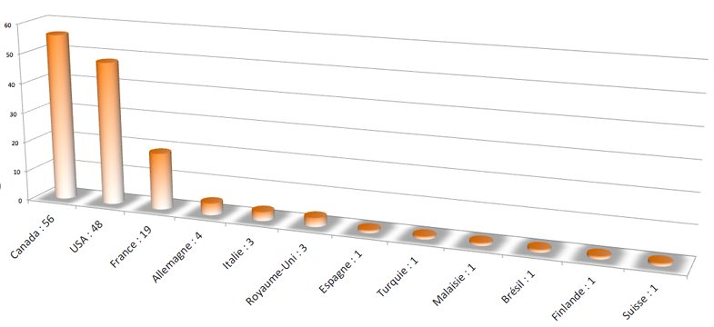12 pays seront représentés. Vous trouverez ci-dessous un tableau pour chacun d'entre eux.