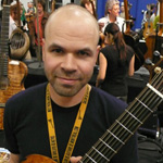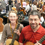 » Déjà présent l'an passé à ce même salon, Thomas nous propose cette année deux guitares particulièrement sublimes. Une douze cordes jouée par Thomas Carbou et le modèle Alizé grand concert jouée par Jean-Luc Thievent.