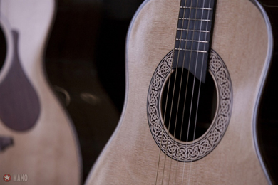 J'ai pu essayer moi-même différents modèles folk et je confirme de la qualité de la finition et du caractère unique de la sonorité des guitares de François.