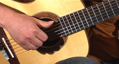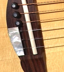 Christophe a demandé à Judith une guitare dont les 3 cordes basses seraient des cordes de guitares folks et les 3 cordes aigües, des cordes nylon de guitare classique.