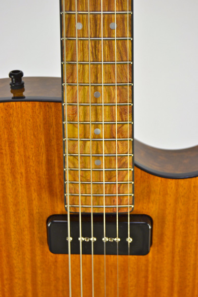 touche en bois de rose du Honduras. Les mMicros sont des P-90 de Jason Lollar.