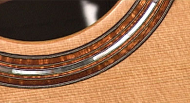 Rosace et fileterie sont sublimes avec un Koa qui se fond dans le paysage des couleurs du cèdre de la table et du blackwood de la caisse.