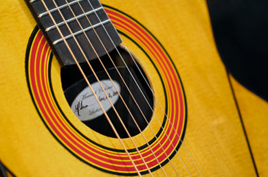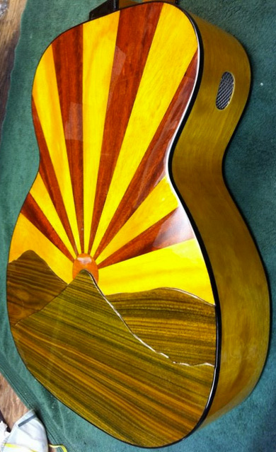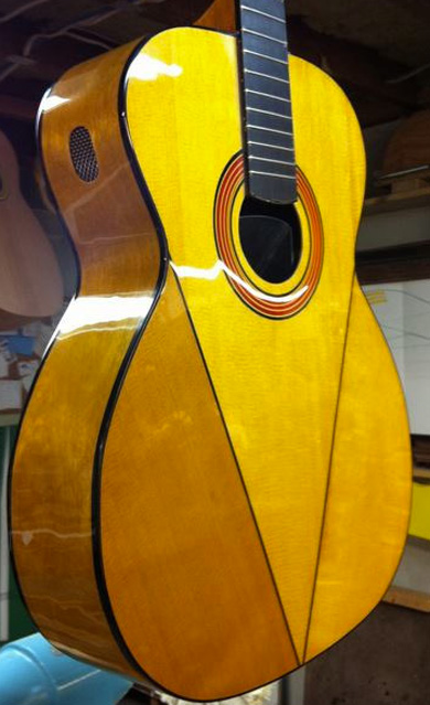 chambre acoustique dans la caisse de la guitare qu'elle a réalisée avec le luthier Michael Dunn.