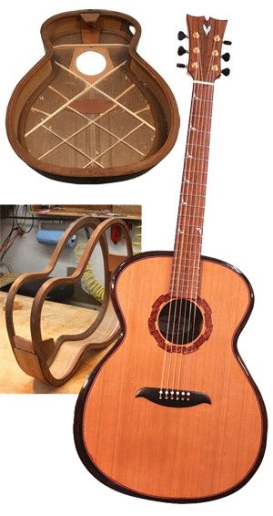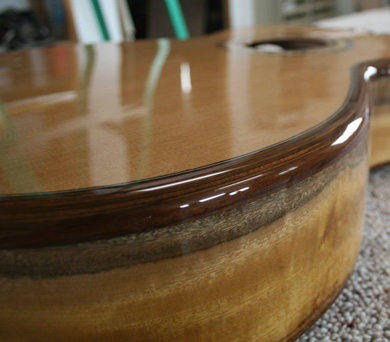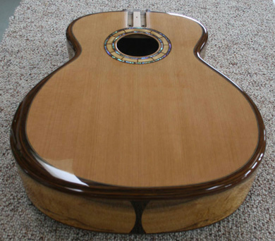 Cette guitare est construite au moyen d'une nouvelle méthode que le luthier américain Rick Micheletti appelle "Rigid Rim" (rebord rigide).