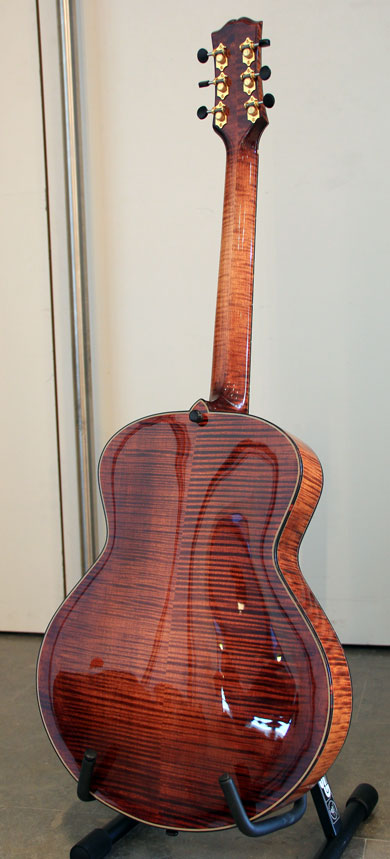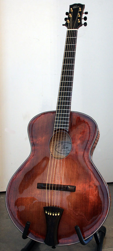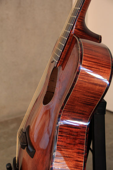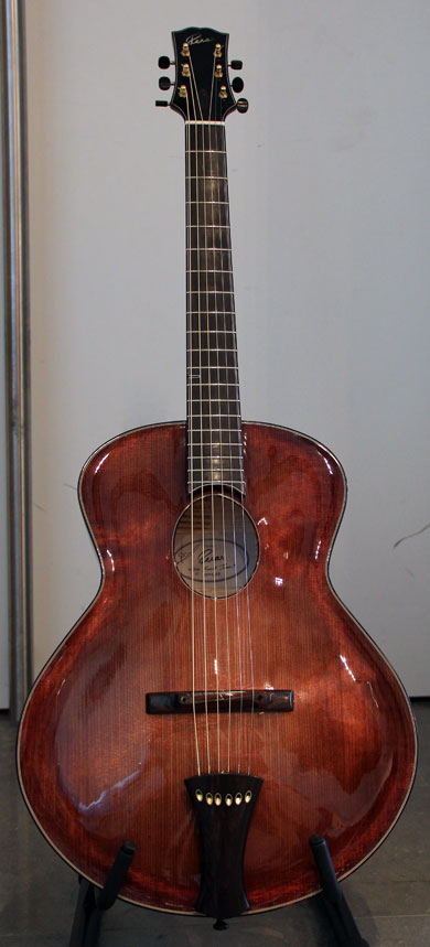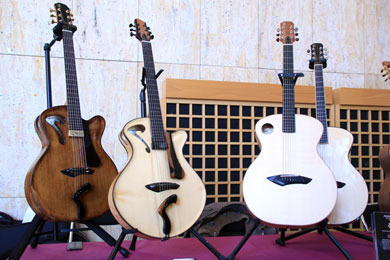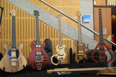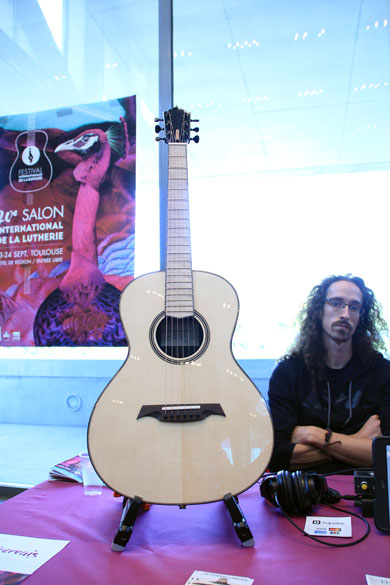 Le salon séparé en deux espaces, l'un acoustique et l'autre électrique était particulièrement bien achalandé. Deux coups de coeur, l'un pour Aurélien Péras et l'autre pour le luthier indien Big foot qui nous montre que l'on peut trouver d'autres essences de bois tropicaux en Inde que le palissandre.