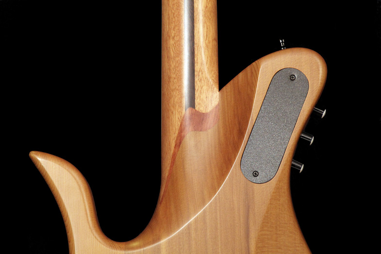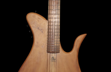 en acajou et wengé est collé, semi conducteur avec une tête déportée et ajourée. La touche en palissandre indien est très claire avec de très jolies nuances.