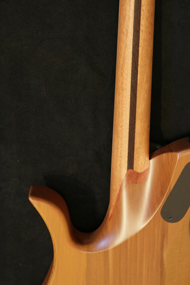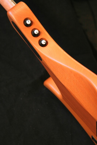 L’idée ici est d’inverser la tendance, d’utiliser un bois ordinairement dédié au table d’harmonie, pour la majeure partie du corps.