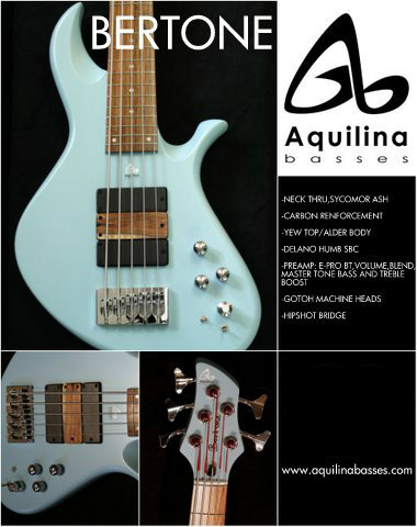 L'atelier AQUILINA BASSES propose aujourd'hui 5 modèles de basse (DB, Shelby, Bertone, Triton, Sirius) et 1 modèle de guitare électro-acoustique (Samba), tous réalisés à la main, sur mesure et déclinables à volonté : 4 à 7 cordes, bois, micros et électronique, finitions ...etc...