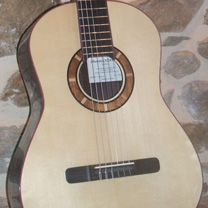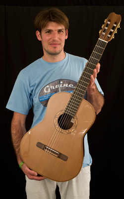 Nous vous avions déjà présenté son modèle "Classica" aux automnales de Ballainvilliers qu'il exposait également à Graines de Guitare mais c'est son modèle "Romanes" que je vous invite à découvrir en photos et en vidéo dans les mains d'Alice Ducoin.