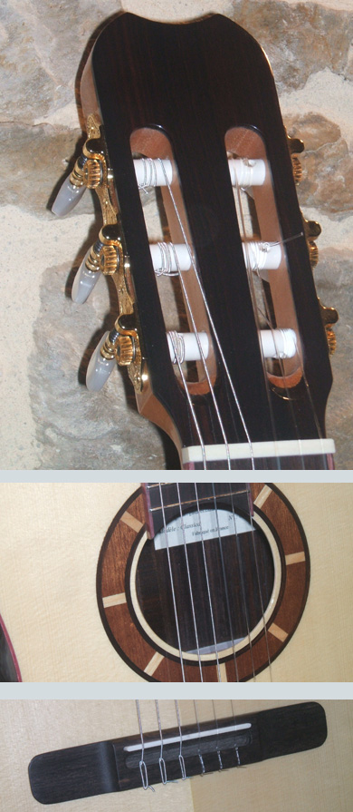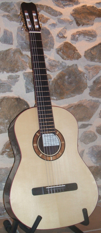 Mes guitares sont toujours réalisées dans le même but, à savoir rechercher la pureté de l'acoustique, ainsi que la sobriété et l'élégance de l'esthétique. Je m'attache également à compléter mes réalisations par une touche d'originalité."
