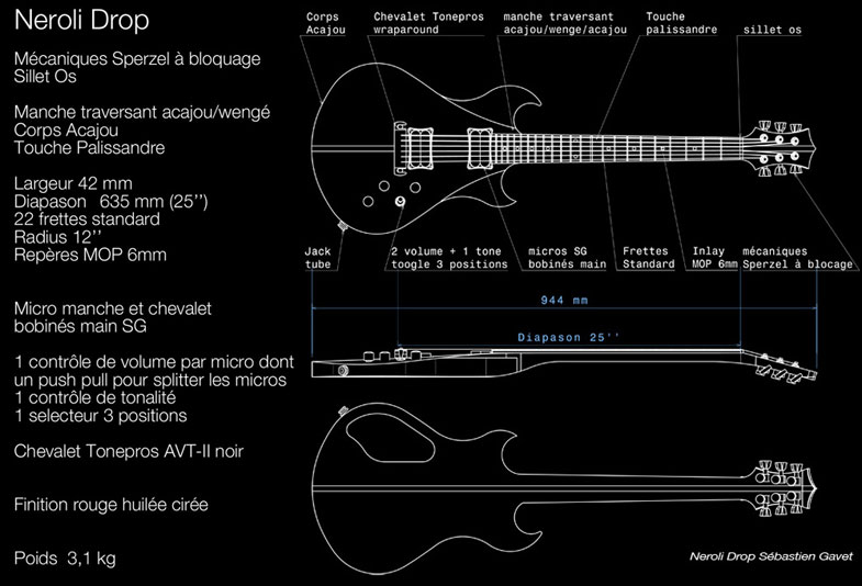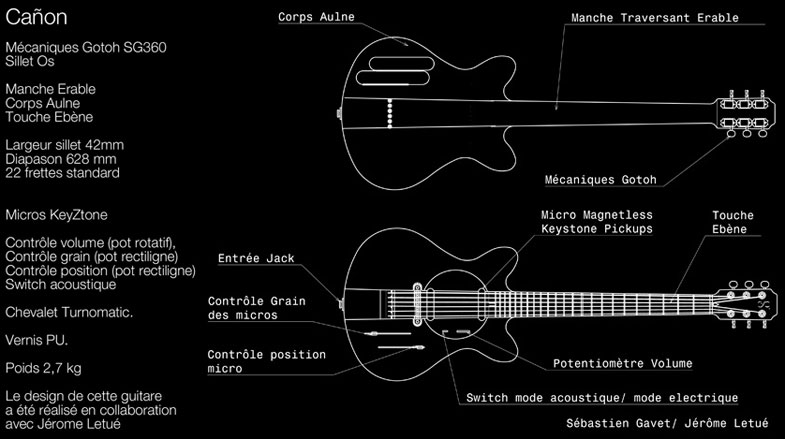 Révélé il y a peu grâce à son incroyable guitare de voyage, la "Tour Bus", Sébastien Gavet continue de nous étonner avec des modèles atypiques comme la Neroli mais surtout la Cañon dont le design a été réalisé en collaboration avec Jérôme Letué.