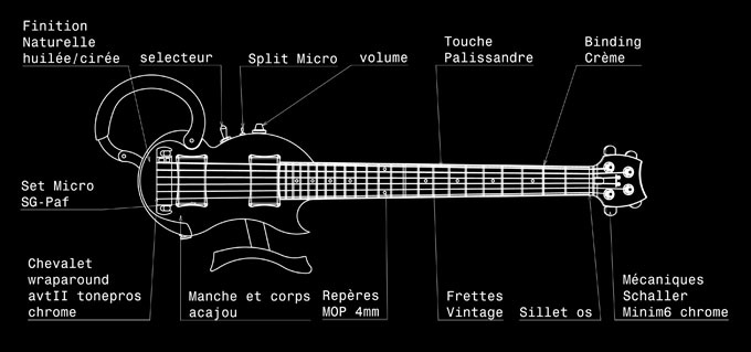 Les micros de cette guitare ont été choisis l'année dernière lors de la première édition de Guitares au Beffroi. La rencontre entre Sébastien et Ambroise Perin de Keyztone pickups a donné lieu à une première collaboration.