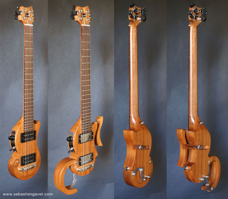 Présentée en février et mars 2013 sur les pages de LaGuitare.com, la Tour Bus de Sébastien Gavet séduit par ses formes, son astucieux système lui permettant de passer d'une petite guitare transportable en une guitare