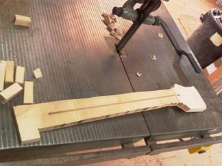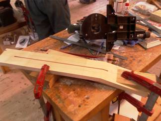 8 - Découpe de l’érable pour réaliser la tête inclinée à 14°.une découpe sensible… |
