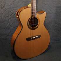 OM pour la caisse munie d'un pan coupé florentin. La prise en main est instantanée et le format du manche en C sans être trop épais, est tout à fait classique et très efficace, avec 44 mm au sillet de tête et 54mm à la 12ème case. La jouabilité de cette OM est telle, qu'on ne se rend pas compte que c'est une nouvelle guitare que nos mains sont en train de manipuler.