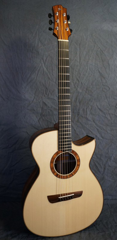 Le couple épicéa/palissandre de santos est assez proche du couple épicéa/palissandre indien ou rio, à des nuances près bien sûr mais le timbre général de l'instrument s'inscrit parfaitement dans l'association des épicéas et des palissandres. Avec un manche en acajou, on reste sur un standard épciéa/palissandre/acajou qui fonctionne à merveille !