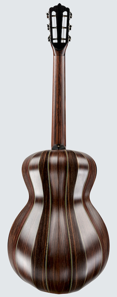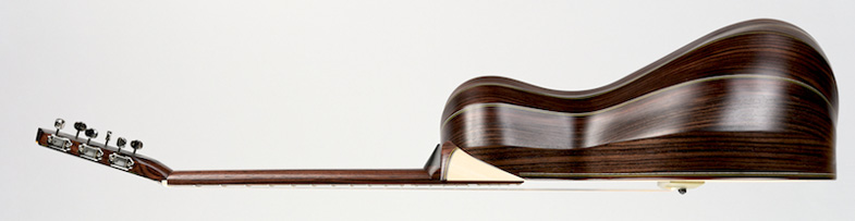 - Corps: Palissandre indien, bombé à l'arrière, réduit au centre, 14 éclisses