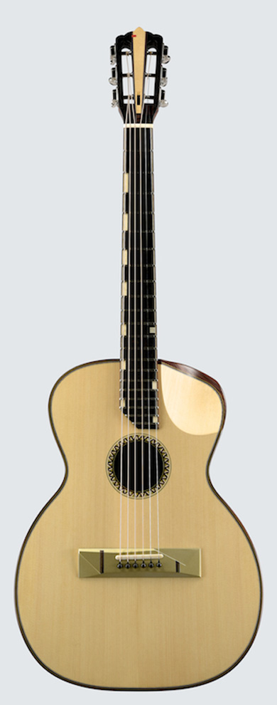 Corps: Palissandre indien, acajou du Honduras, évidé en partie, dos concave, table voûtée