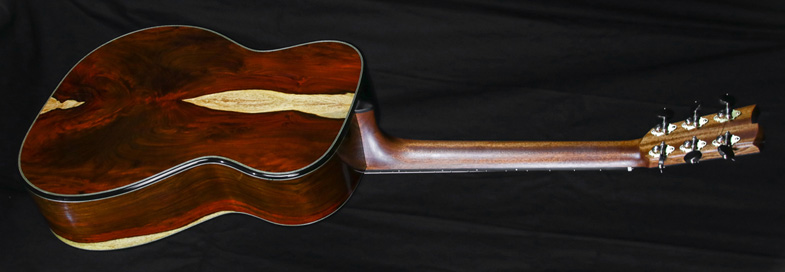 Des bois de toute beauté particulièrement figurés, table, dos et éclisses, une finition irréprochable, un travail d'une très grande précision. Les sonorités de cette OM sont très profondes, boisées, puissantes, dotées
