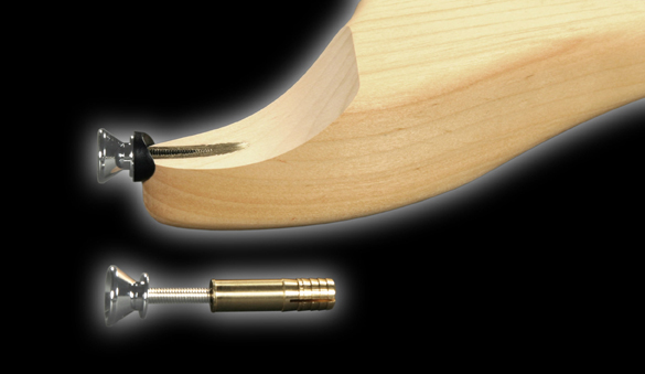 Pour finir sur l’accastillage, les attaches courroies sont sécurisées par un insert pénétrant assez profondément dans le corps. |