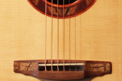 La table est doublée, épicéa et cèdre rouge. Pratique que Vincent a l'habitude d'utiliser pour ses guitares classiques.