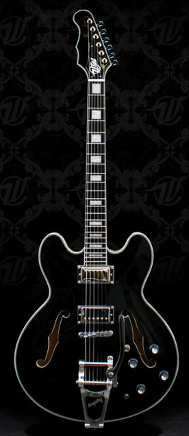 La demi-caisse la plus rock n'roll de tous les temps! Renforcée pour éviter les larsens inutiles et laisser place à de grosses sonorités puissantes et un sustain de malade! Cette grat' ne tremble pas devant un bon gros morceau de stoner rock mais c'est également l'arme ultime pour jouer du garage et du brit' rock! Mais c'est aussi une pure merveille pour taper un bon vieux blues avec un son d'anthologie, que ce soit en manche ou en chevalet.