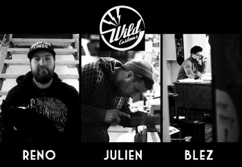 Wild Customs, c'est Julien, le luthier, ébéniste de formation; Reno graphiste designer et marketing, et Blez , directeur des ventes et Marketing.