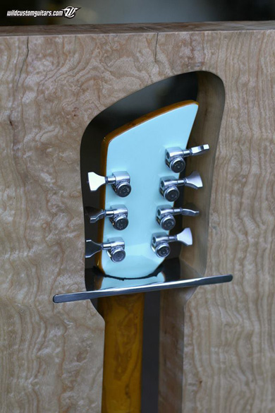 "L'équipe de Wild Customs à mis en oeuvre tout son goût et son savoir-faire pour créer un instrument d'exception. Une guitare 7 cordes créée à partir d'une seule pièce de frène ondé. Une touche en érable flammé traverse la guitare du sillet jusqu'à l'extremité inférieure du corps pour obtenir un transfert de vibrations hors du commun. Les cordes traversantes complètent le tout. Un double trussrod est installé dans le manche pour une stabilité parfaite.